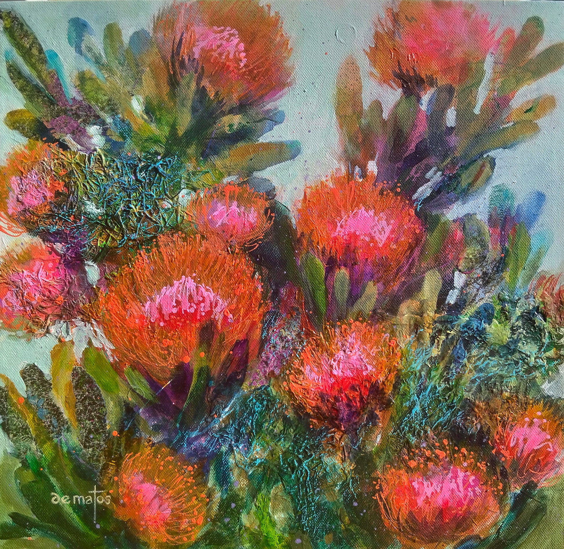Immerse yourself in the serene beauty of the Cape fynbosch - bobbejaanklouspeldekussing - with "Warm Embrace." This painting captures the delicate nature of South African native flora, evoking a tranquil yet vibrant floral display. Ideal for those who appreciate nature’s subtle elegance, it brings a refined touch of South Africa’s unique biodiversity into any living space.