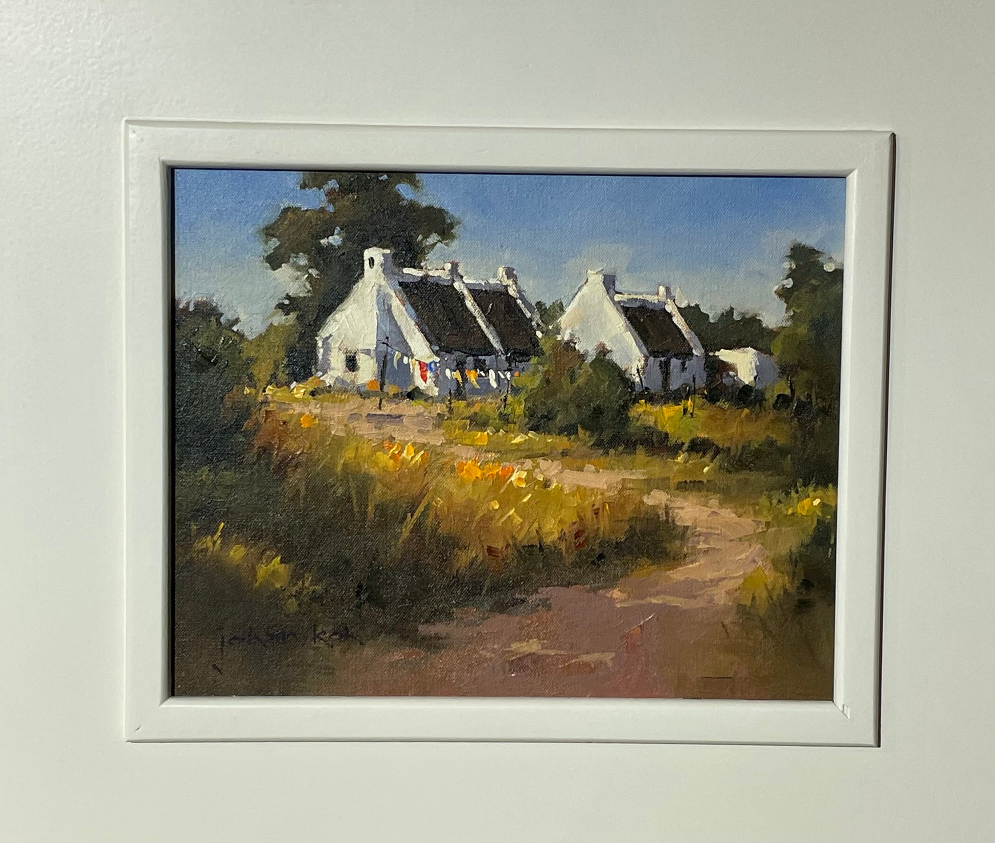 Experience the luxury of a leisurely stroll through the countryside with 'Washing done.' This oil painting by Johan Kok captures the idyllic charm of a dirt road leading to quaint houses. The inclusion of a clothes line with freshly washed laundry adds a touch of authenticity and domestic bliss.