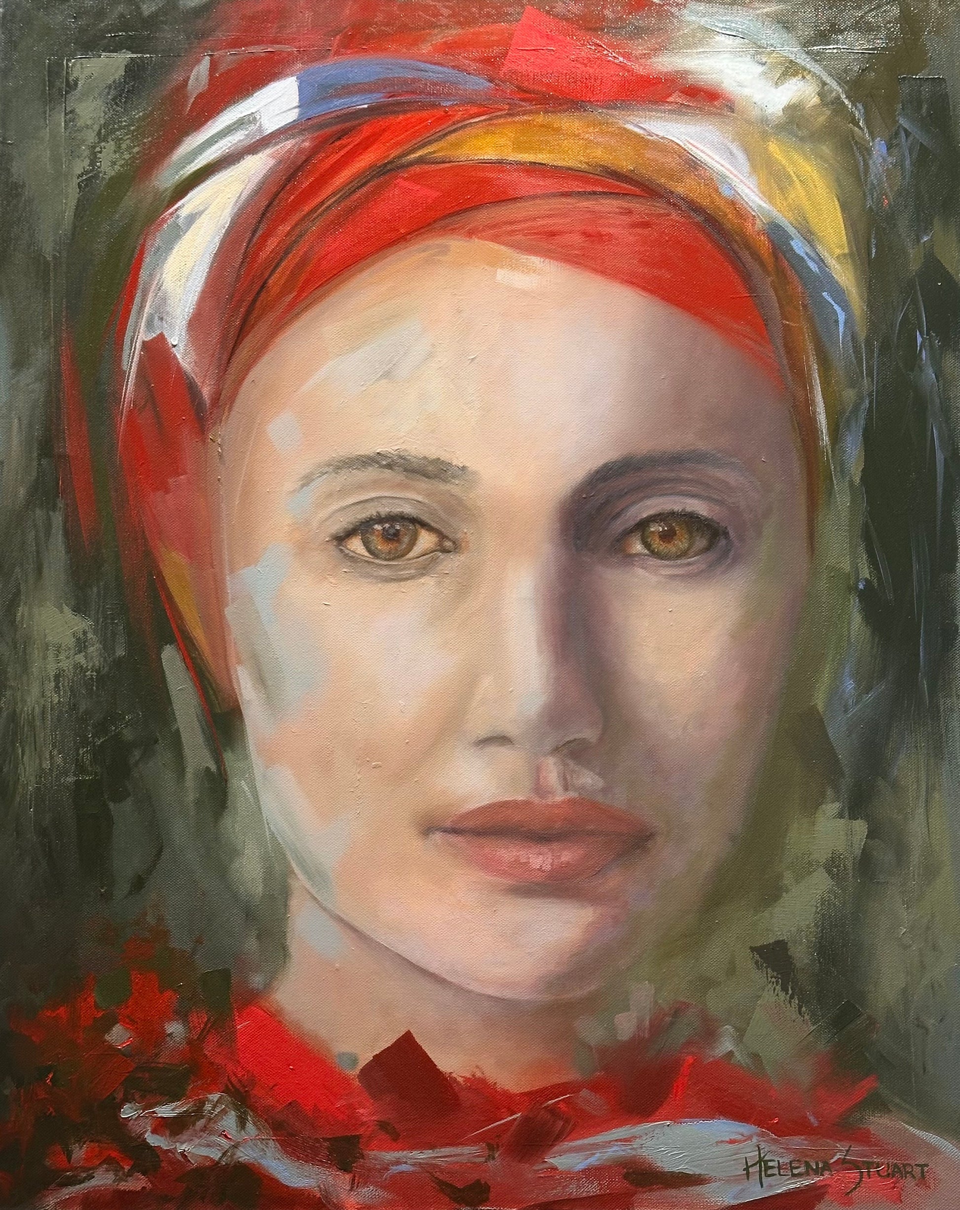 This work, Wrapped in Unity, portrays a woman dressed in a vibrant, traditional African outfit with a strikingly colourful head “doek”. The painting reflects the beauty and dignity of cultural attire while inviting the viewer to consider the richness that emerges when cultures meet.