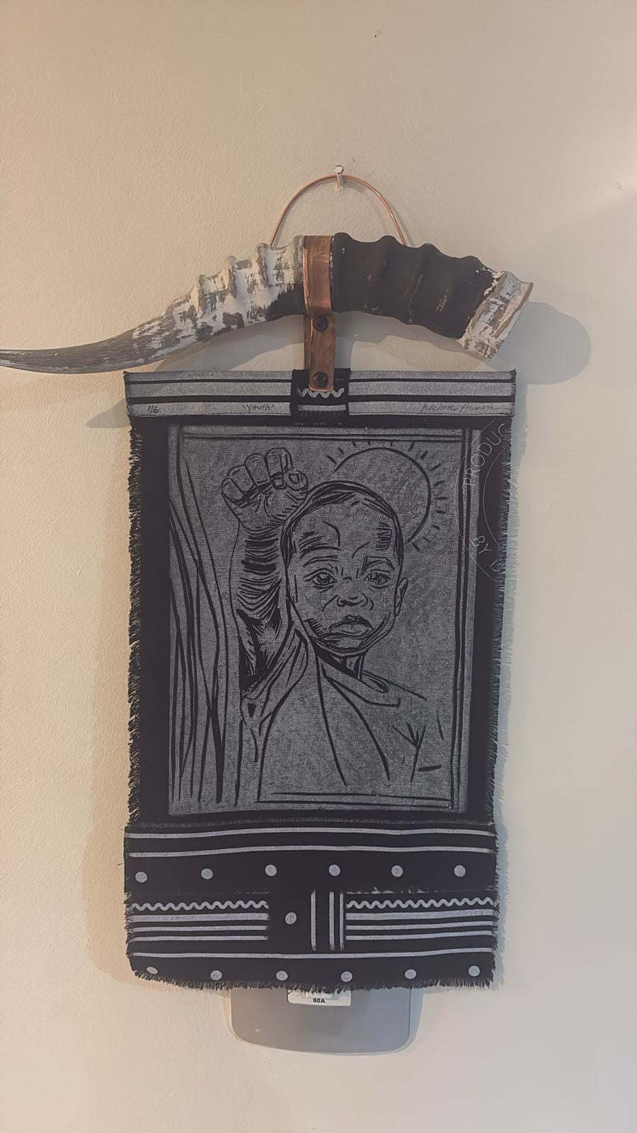 Medium: Mixed Media, Blesbok Horn, Ink, Local Fabric, Lino print